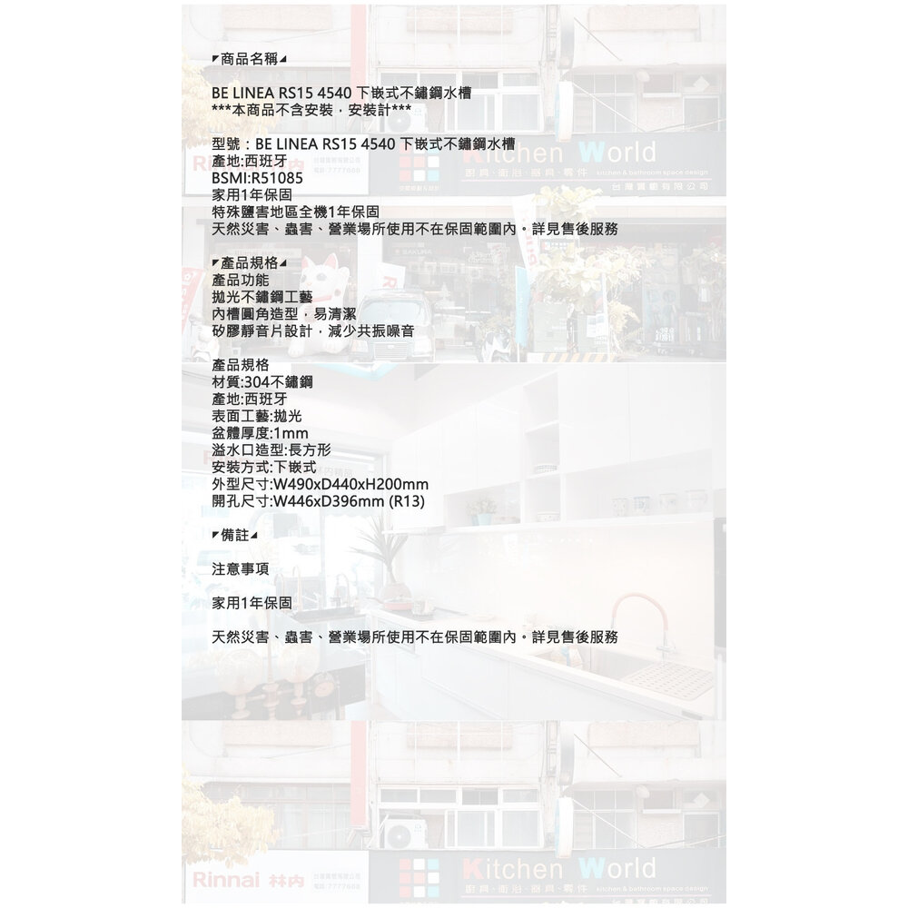 型號:TEKA BE LINEA RS15 4540 下嵌式不鏽鋼水槽