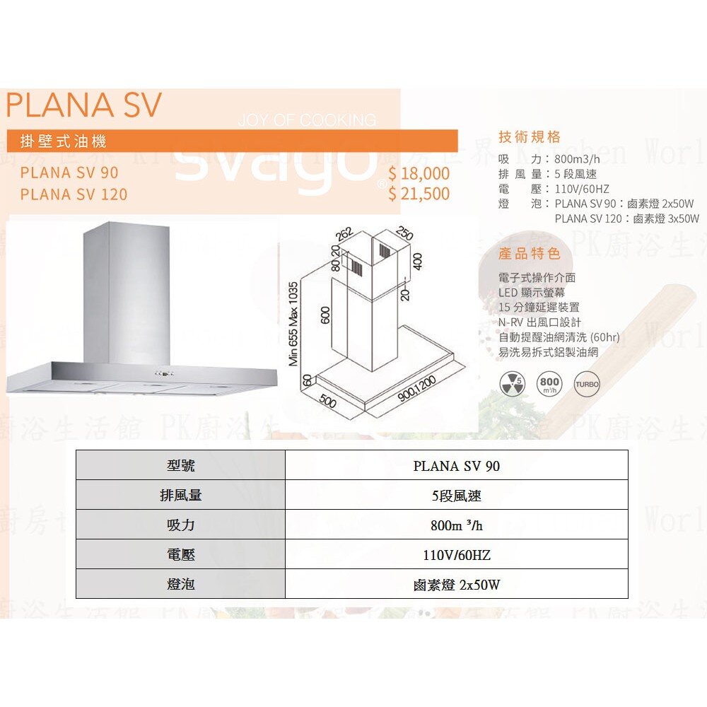 櫻花 Svago PLANA SV 90 掛壁式排油煙機 油機