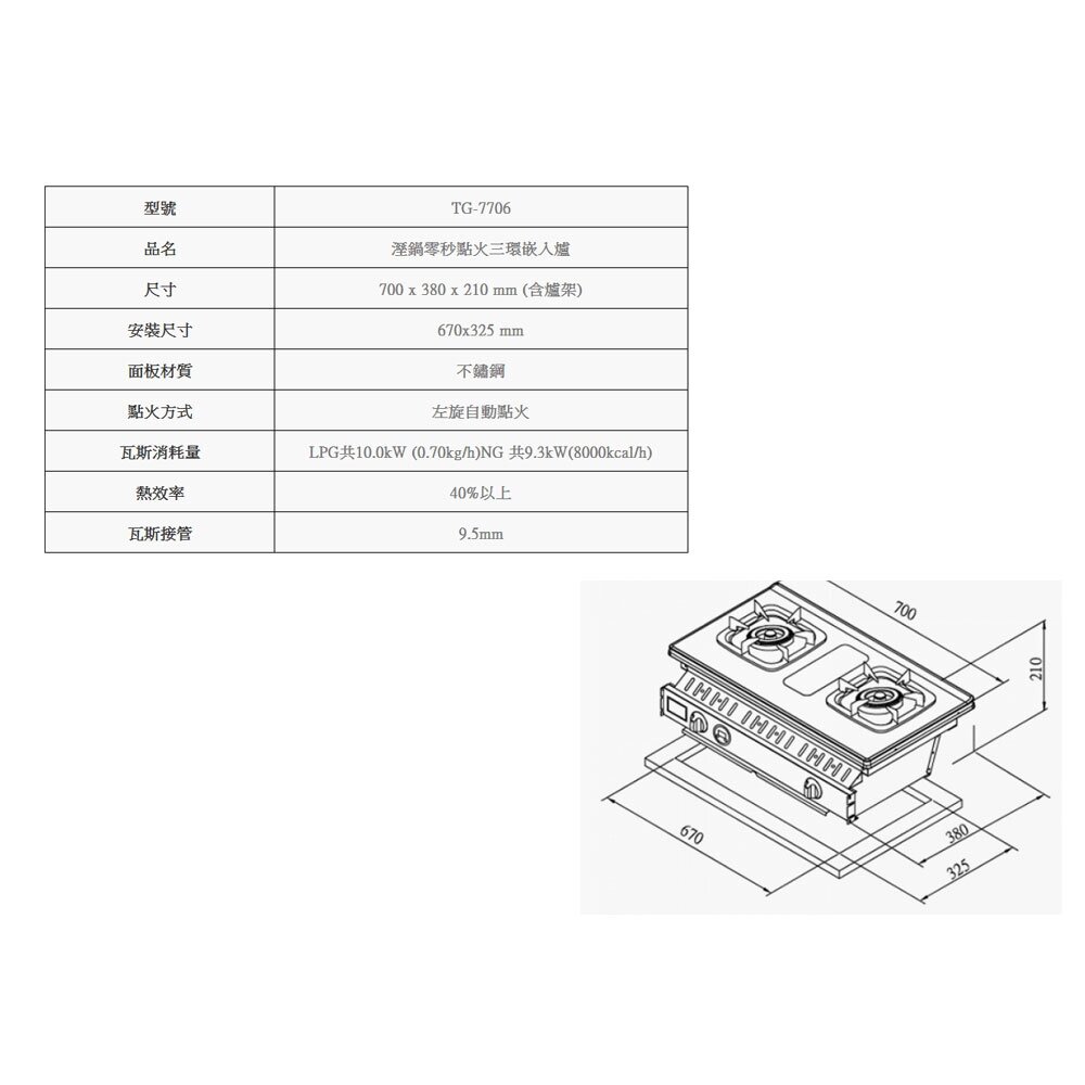 莊頭北 TG-7706 溼鍋零秒點火三環嵌入爐
