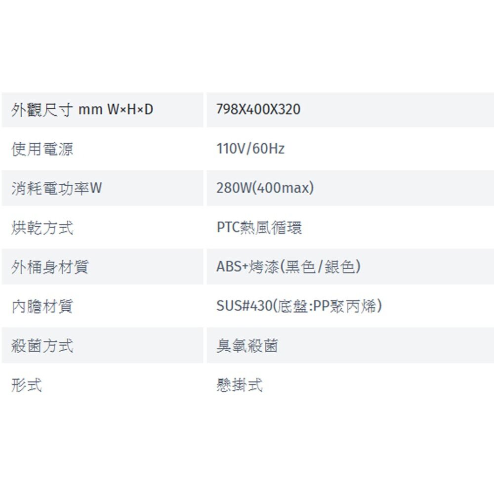 林內牌 RKD-186S(B) 黑色 懸掛式 烘碗機 80cm