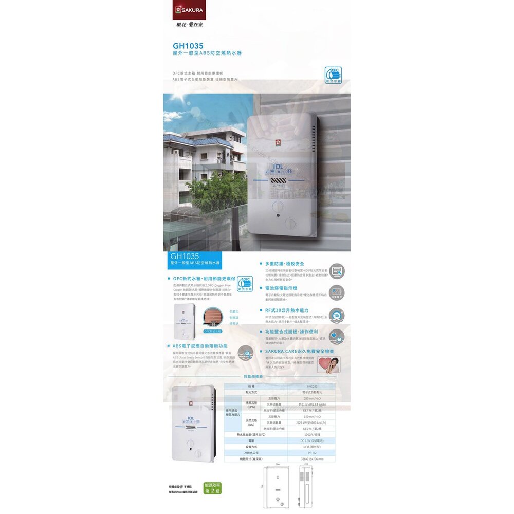 櫻花牌 GH1035 10公升 屋外型熱水器
