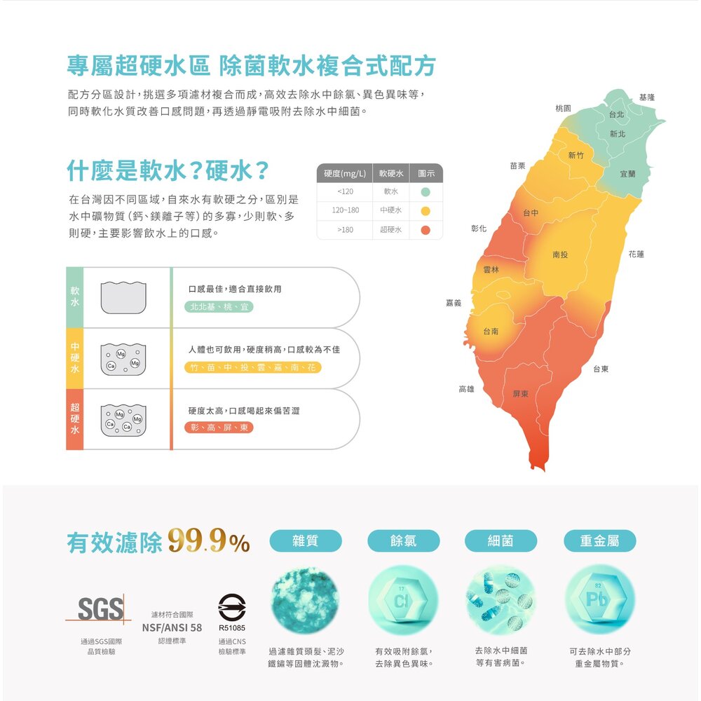 ◆ 專屬超硬水區軟水除菌配方