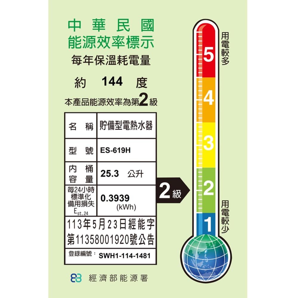怡心牌 ES-619TH 25.3L 橫掛 電能 熱水器