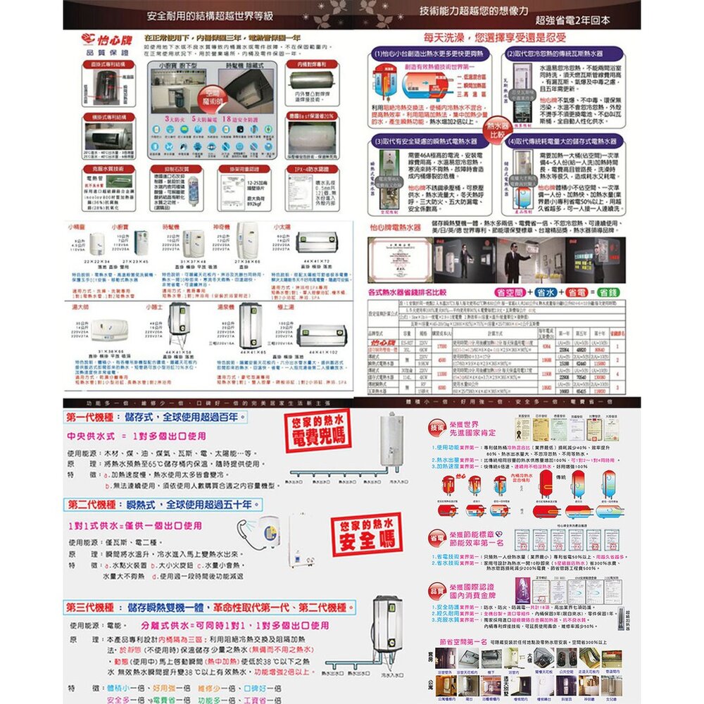 •特色說明:本產品榮獲「能源效率標示 2 級」可零空間安裝,隱藏天花板內,體積小不佔空間,淋浴及洗臉台同時用,省電熱水即來,寒流冬天夠熱,電力只需19A。