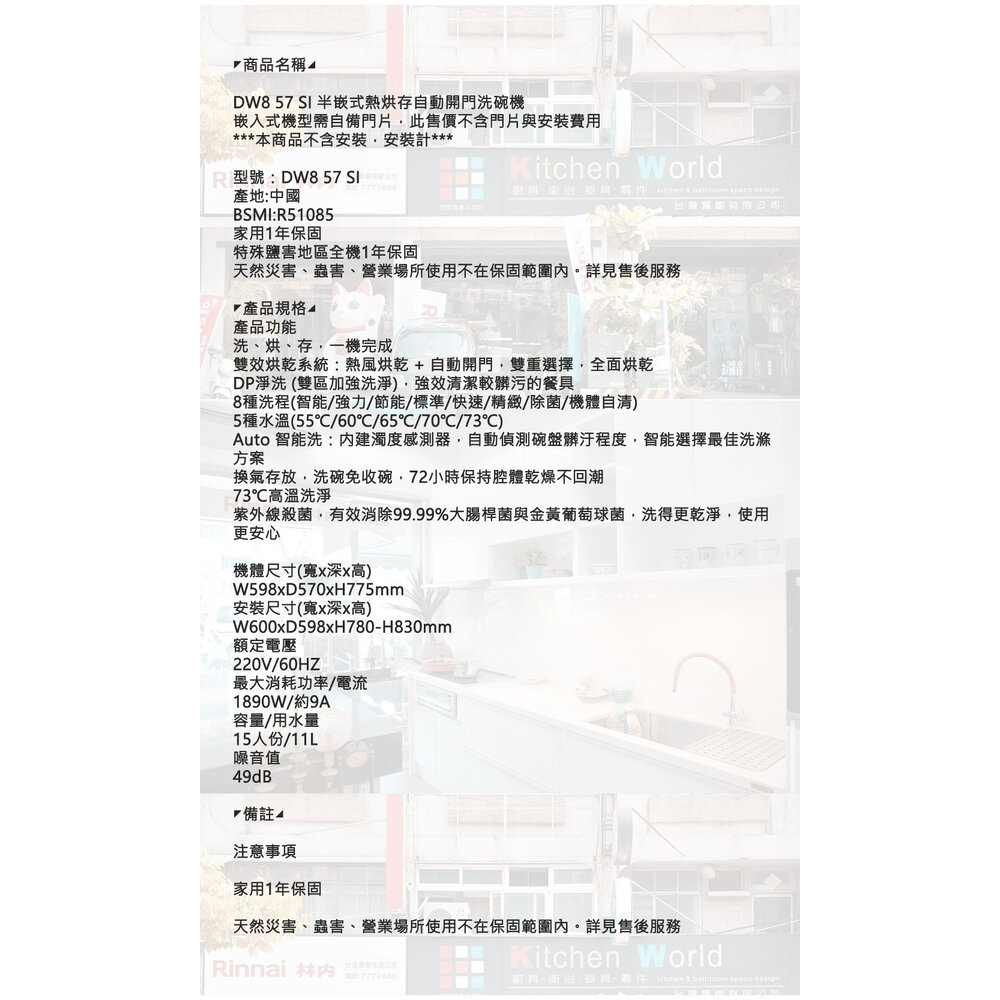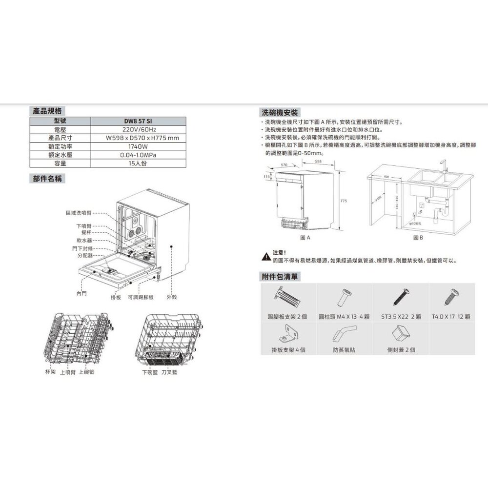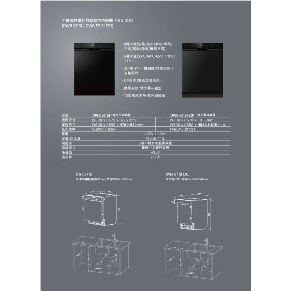 型號:TEKA DW8 57 SI 半崁式熱烘存 自動開門洗碗機