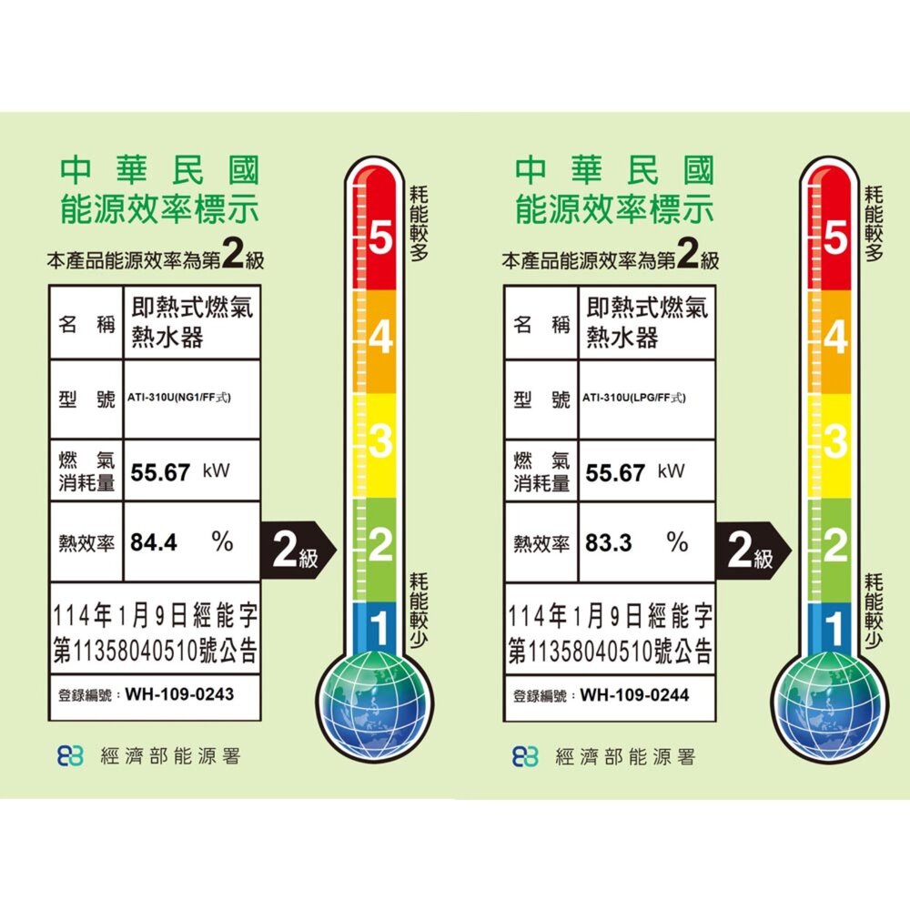 ATI-310U 27L 瓦斯熱水器 室內型強制排氣 防一氣化碳 美國原裝進口