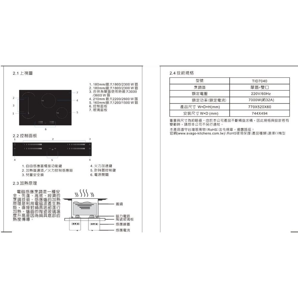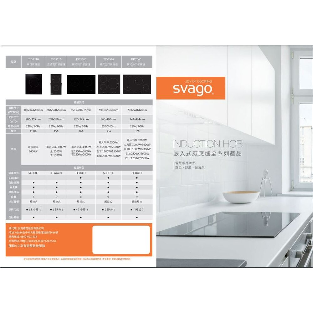型號:SVAGO TID7040 四口感應爐 IH爐
