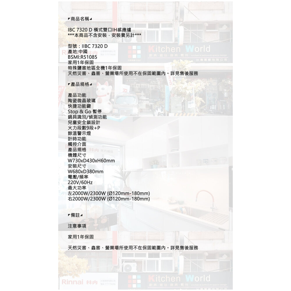 型號:TEKA IBC 7320 D 橫式雙口 咸應爐IH感應爐