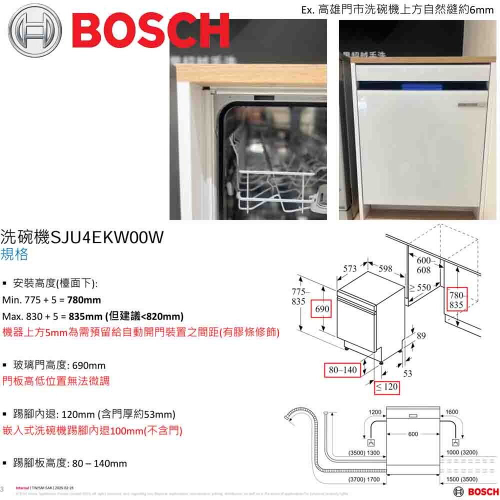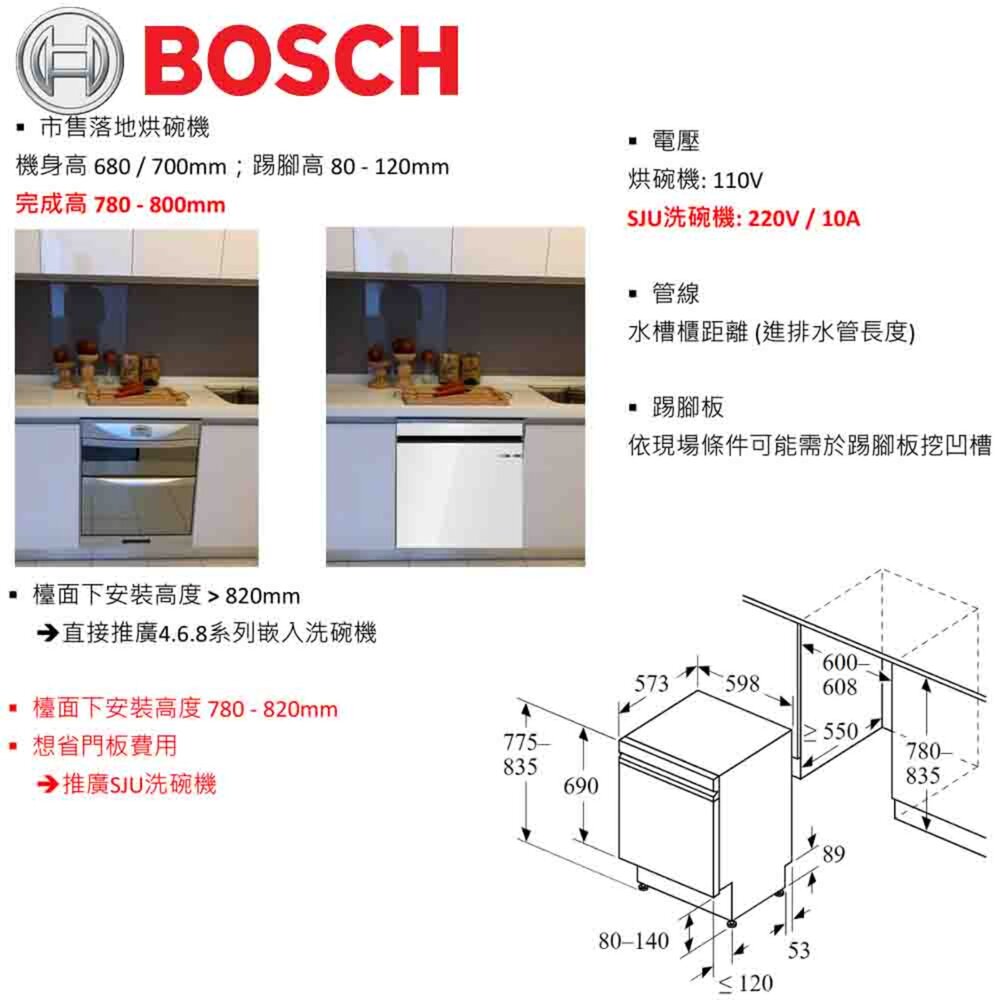 BOSCH 博世 SJU4EKW00W 白色亮面玻璃門 半嵌式 60cm 洗碗機 220V