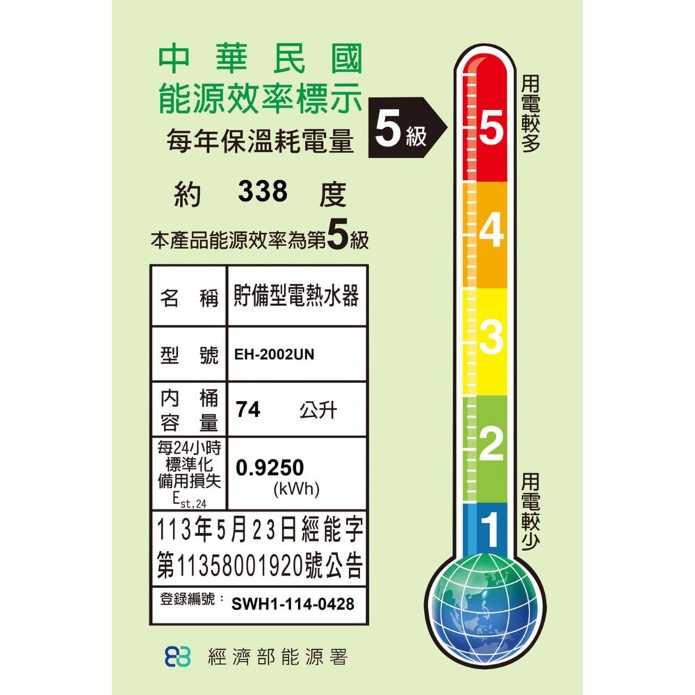 高雄 HMK鴻茂 EH-2002UN 電能熱水器  聯網UN型 掛立式-圖片-2
