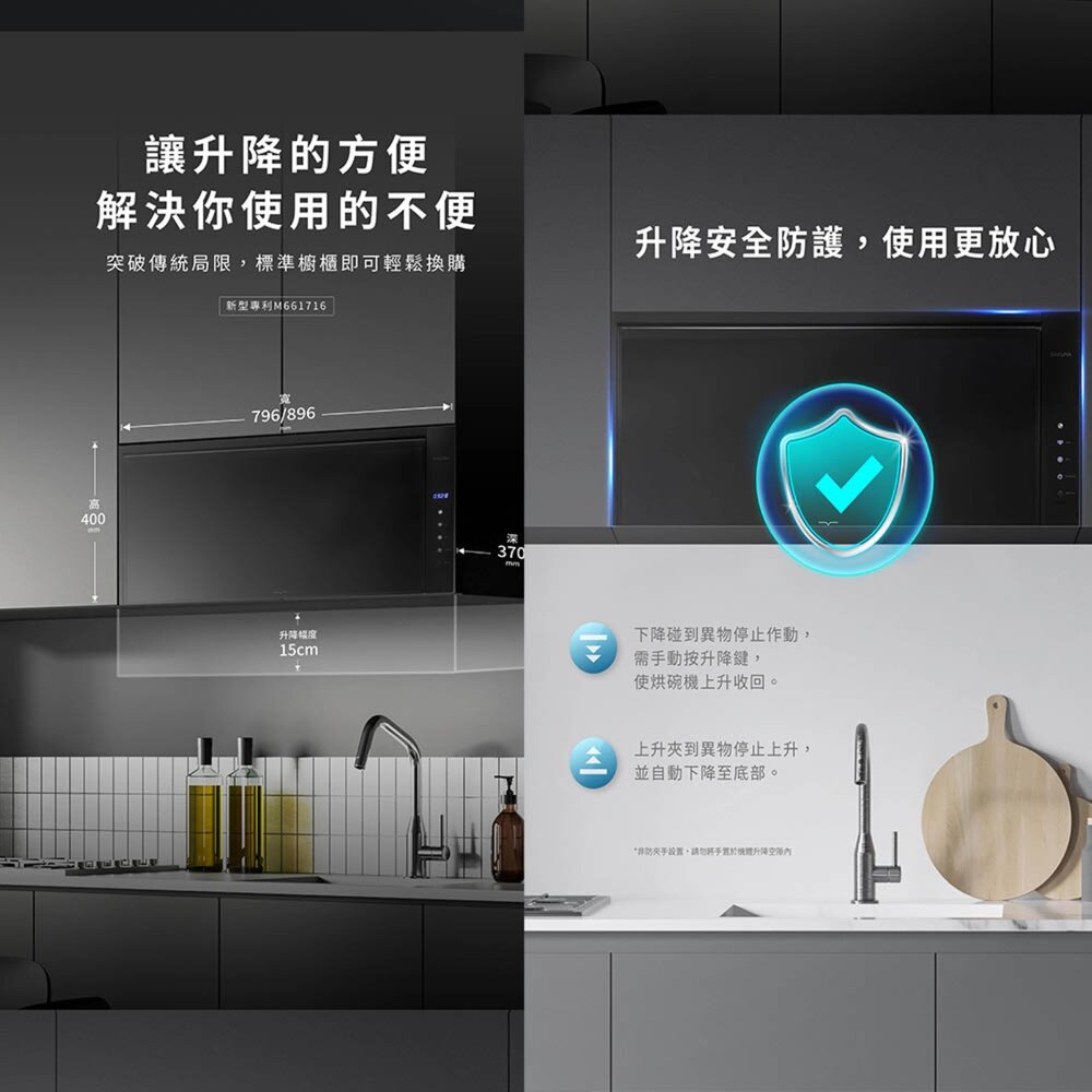 ▪ 智能感應升降,無須觸碰,手濕也能輕鬆啟動