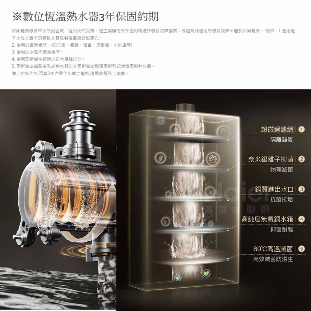 • 8項安全裝置:防空燒/防爆燃/停電斷氣保護/點火失敗/防假火/水壓保護/防漏電/防雷擊