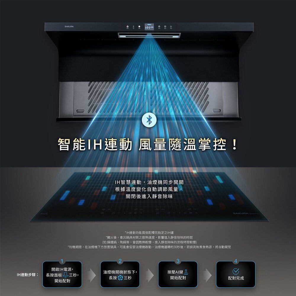 ◆智能IH連動,油煙機與IH同步啟閉