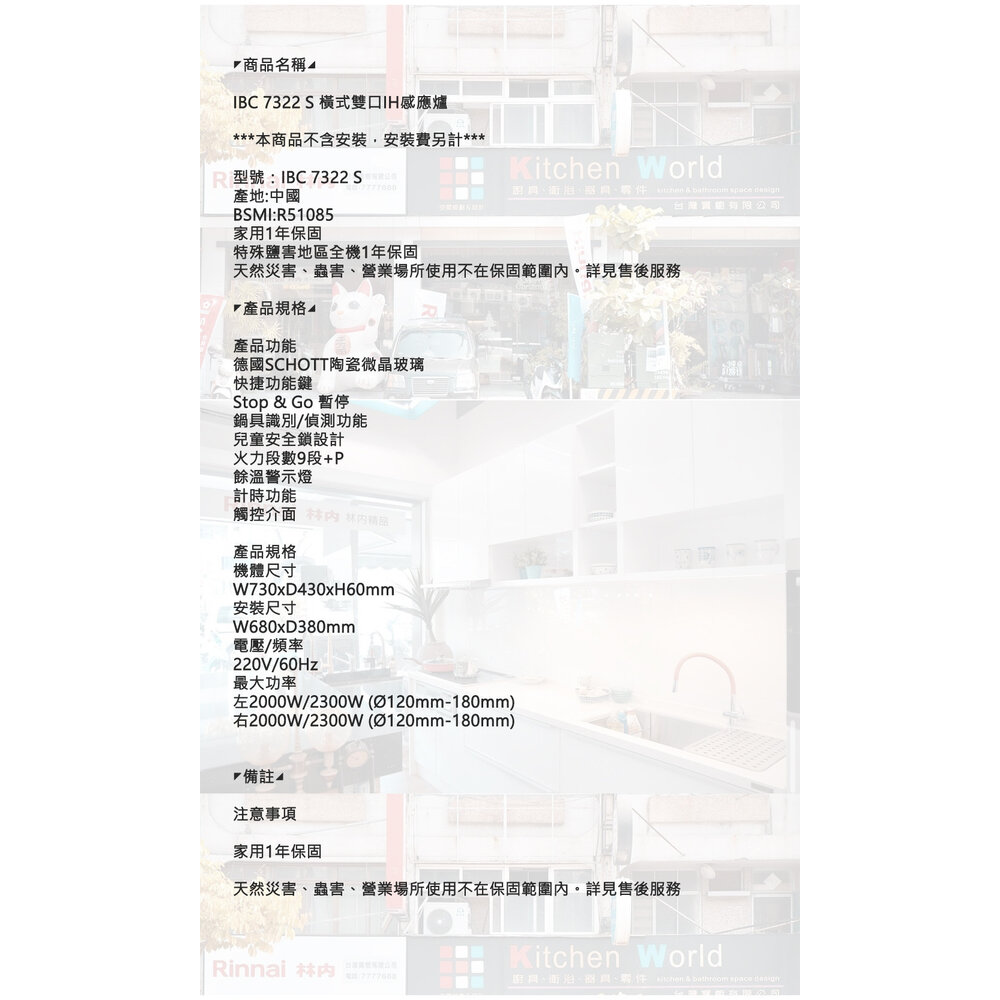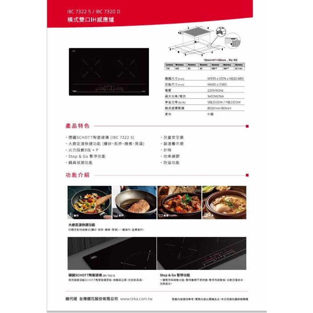 型號:TEKA IBC 7322 S 橫式雙口IH 咸應爐