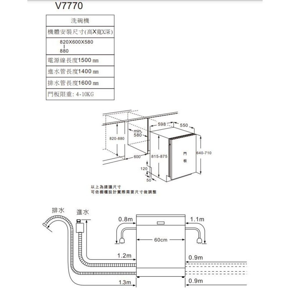 •嵌入式機型(需搭配門板)