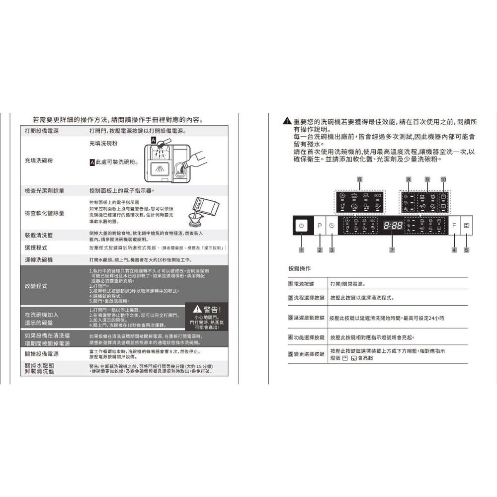 •加強功能:加強乾燥/加強洗淨/上下層洗/縮短清洗/節能