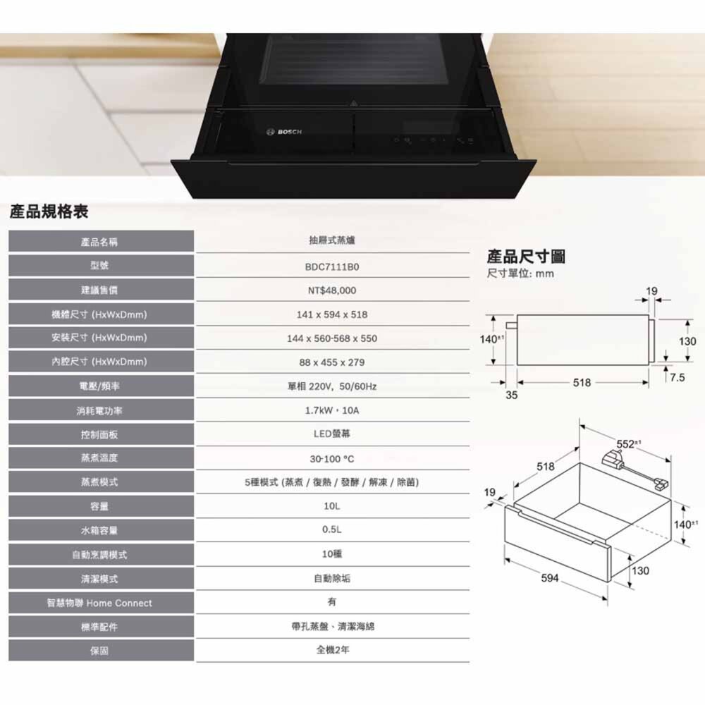 型號: BOSCH 博西家電 抽屜式蒸爐 蒸爐