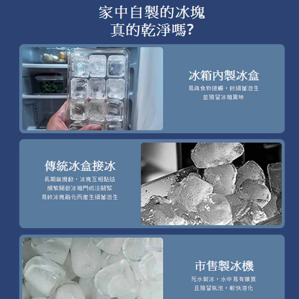• 7分鐘急速製冰:搭載UV殺菌,快速製成高透子彈冰塊