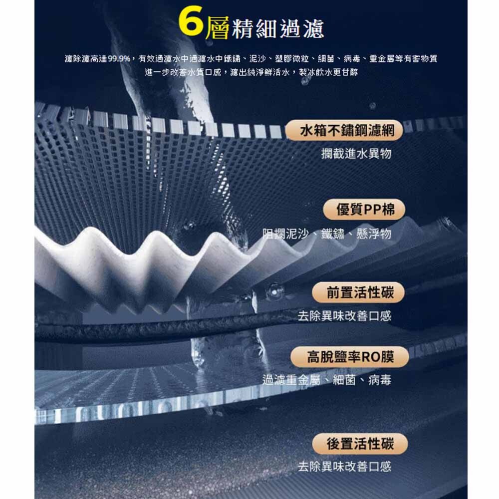 • 6層精細過濾:過濾精度達0.0001微米,製冰飲水更甘醇