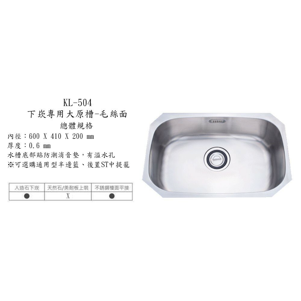 大吉熊 KL-504 不鏽鋼 水槽 大原槽-毛絲面(有溢)