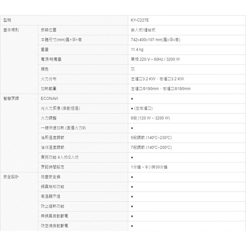 【Panasonic】國際牌 KY-C227E IH 感應爐 璀璨灰