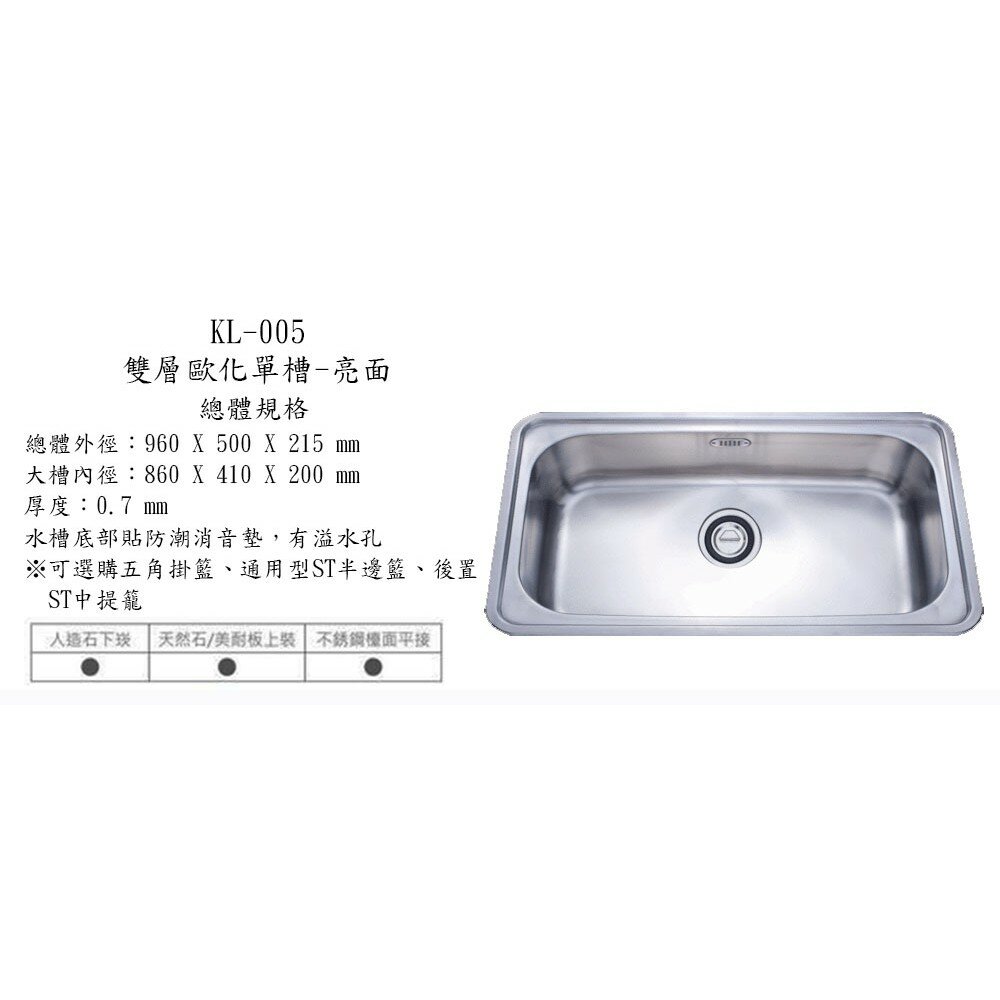 大吉熊 KL-005 不鏽鋼 水槽 雙層歐化單槽-亮面