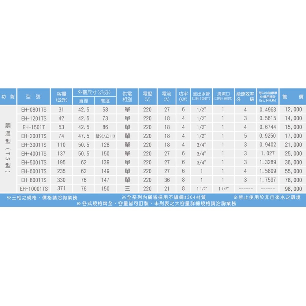 HMK鴻茂 EH-3001TS 110L 調溫型 電熱水器